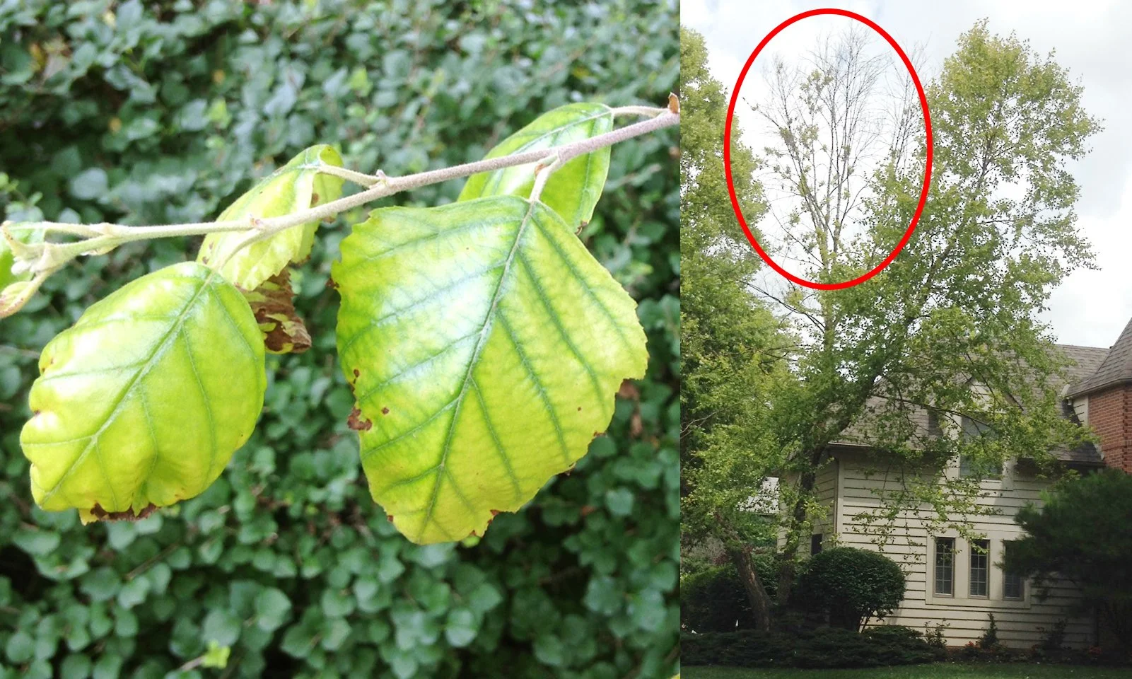 When I’m first asked to observe the health of a nutrient-deficient tree, chlorosis typically shows up as yellowing between the veins of leaves, while the veins themselves may remain green. Or the leaves have already dropped prematurely in July, August, or September, leading to slowed growth, or the tree may present with a thin canopy and other stressed signs. While nutrient deficiency is a common cause, it’s important not to jump to conclusions. Similar symptoms can result from other stressors, such as intense summer drought (as we’ve recently experienced the past two years), compacted soil, poor drainage, root damage, or pest and disease issues. Sometimes there can even be a cascading effect where the tree no longer has the nutrients it needs to fight off various pests, leading to more damage and a cycle of negative reinforcement. The important thing to remember is that proper diagnosis of the underlying issue, or in some cases issues, is key before beginning any treatment plan.