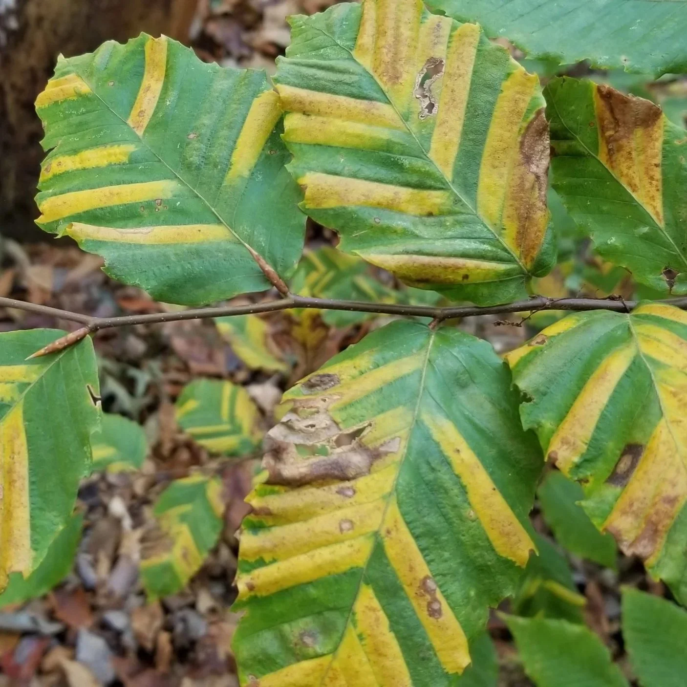 First spotted in northeastern Ohio in 2012, BLD has quickly spread across the eastern U.S. and into parts of Canada. It’s been linked to a microscopic worm, called a nematode, that attacks beech leaves and buds. Beech leaf disease is easily recognizable by its distinctive dark green bands between the leaf veins. In the fall, the affected leaf bands can appear yellow. As the infection worsens, the leaves thicken and take on a leathery feel and may begin to curl while the nematodes spread to new leaf buds. This damage prevents the leaves from photosynthesizing properly. Repeated damage can kill young beech trees in 2 to 5 years. Larger, more mature beech trees seem to be able to hold out longer, but are still affected. Some have shown to begin losing branches from the bottom of the canopy and work upwards year over year.