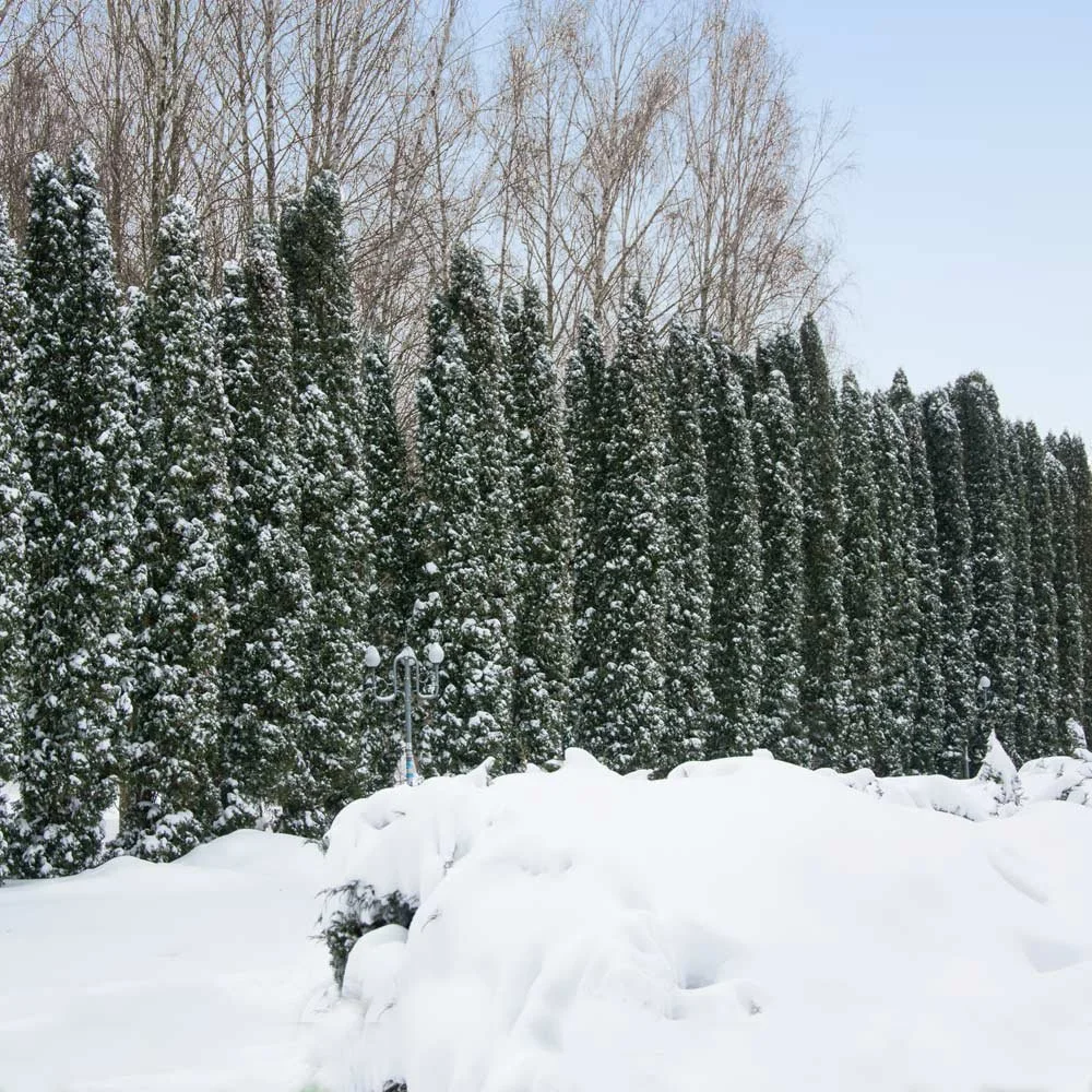 Arborvitae remains the workhorse for privacy screens. Emerald green arborvitae (Thuja occidentalis ‘Smaragd’) is narrow and widely available tree, but can brown badly in winter and is a favorite of whitetail deer. Green giant arborvitae (a hybrid, often listed as Thuja ‘Green Giant’ or Thuja plicata × standishii), however, is one of the true success stories: fast growing (3–5 ft per year when young), heat and drought-tolerant once established, decent clay soil tolerance, and much better deer resistance. For a tall, reliable screen in central Ohio, Green giant arborvitae is usually my top pick.