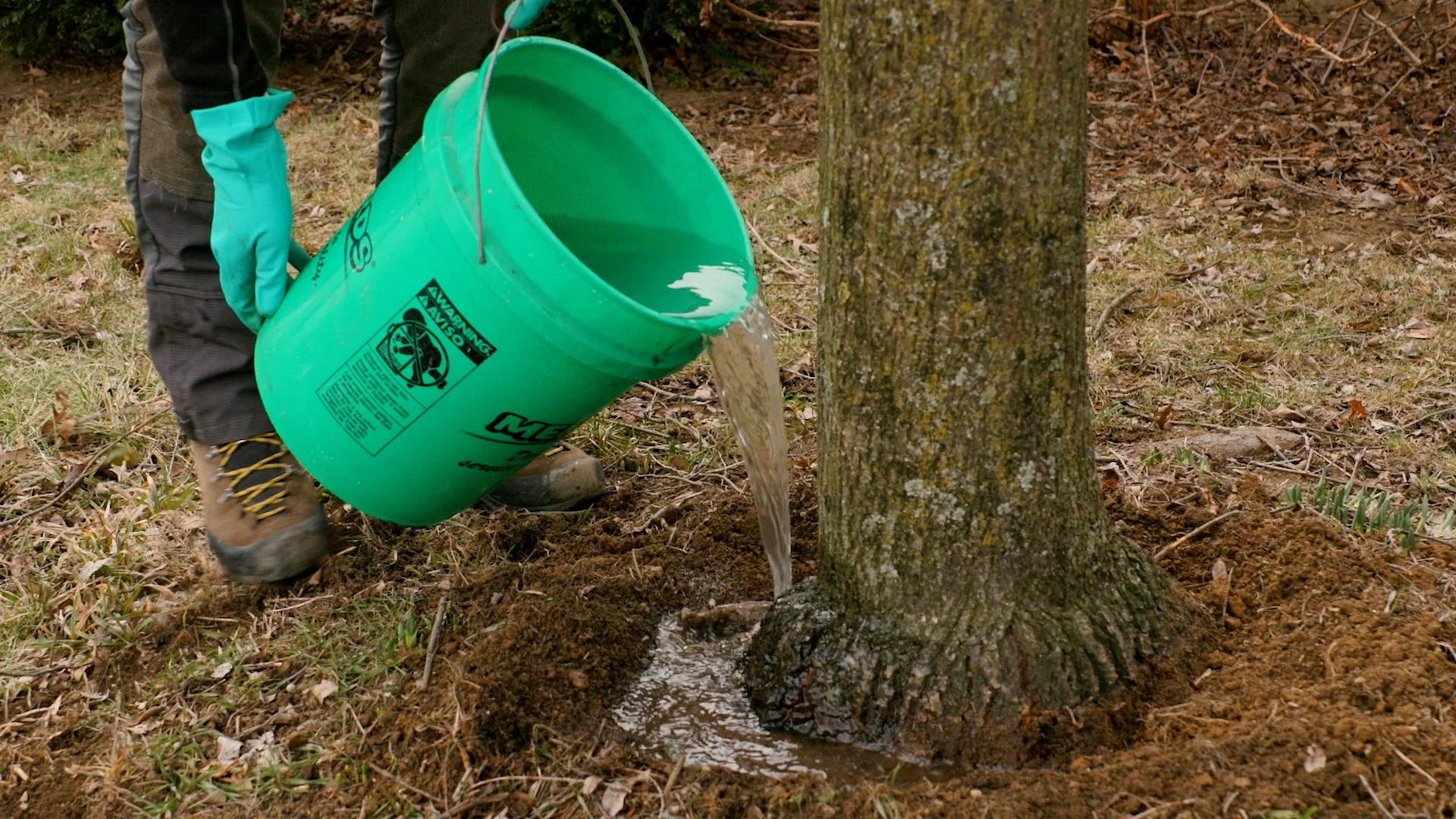 A basal drench is performed by dissolving nutrients, typically manganese or iron, into water and slowly distributing the solution around the tree’s base.