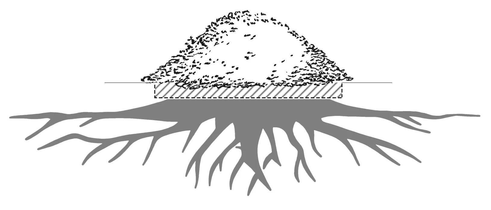 The stump will be ground out deep and wide - approximately 16-18” below the surface and as wide as needed. The stump shavings (which is a dense mixture of dirt and wood shavings) are left on site unless you choose the Grinding + Clean-Up or Stump Restoration option (see below).